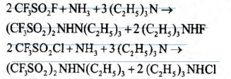 三氟甲磺酰氟或三氟甲磺酰氯在三乙胺作催化下直接与干燥氨气反应制得双三氟甲磺酰亚胺三乙胺盐,进一步将 双三氟甲基磺酰亚胺三乙胺盐用硫酸酸化得到 双三氟甲基磺酰亚胺。